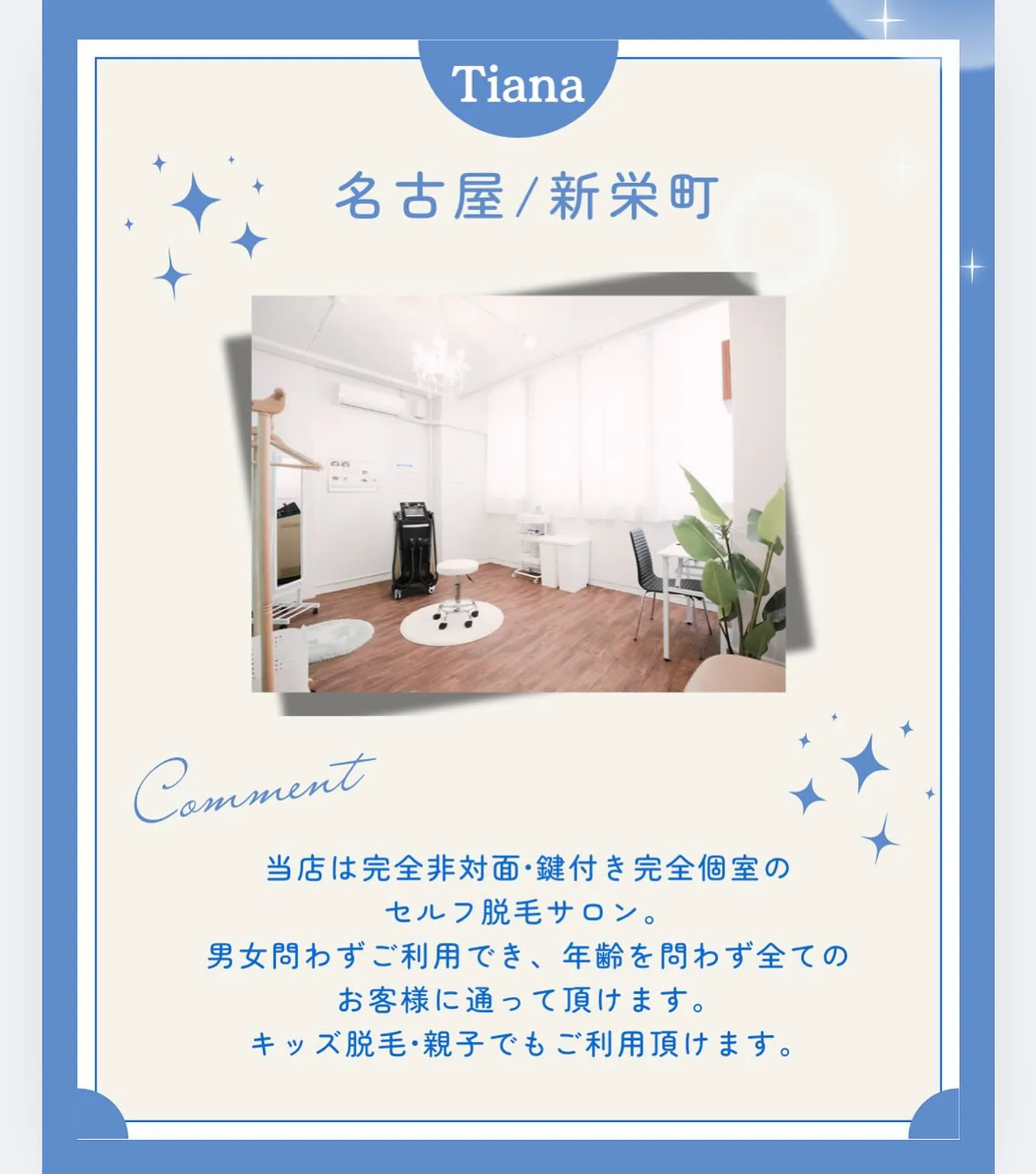 Tiana新栄店は完全非対面・鍵付き完全個室のセルフ脱毛サロン✨