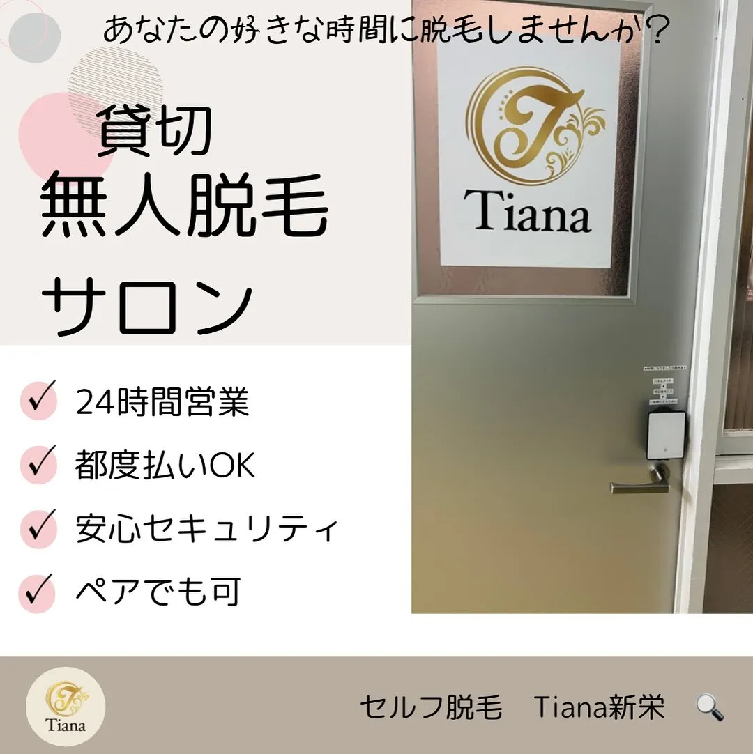 セルフ脱毛サロンTiana新栄店なら24時間営業なので、仕事前、お昼休憩、仕事後、お休みの日、夜中など、お客様の好きな時間にご来店可能です⏰✨