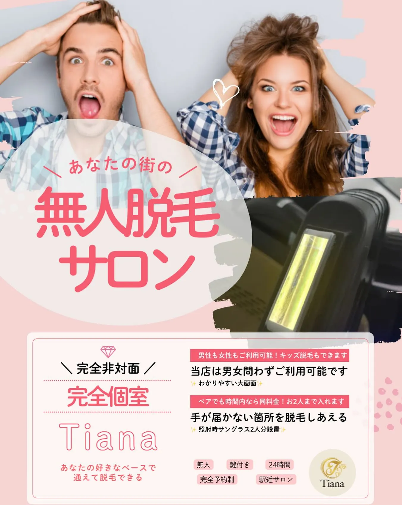 完全非対面💎鍵付き完全個室💎セルフ脱毛サロンTiana新栄店です🏬