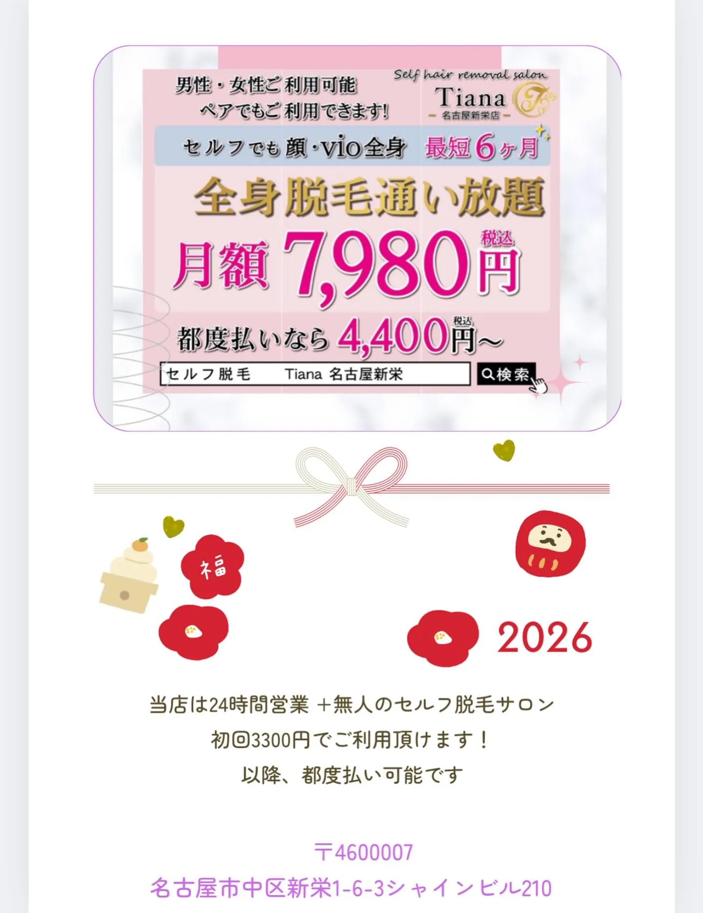 〈セルフ脱毛サロンTiana新栄店〉