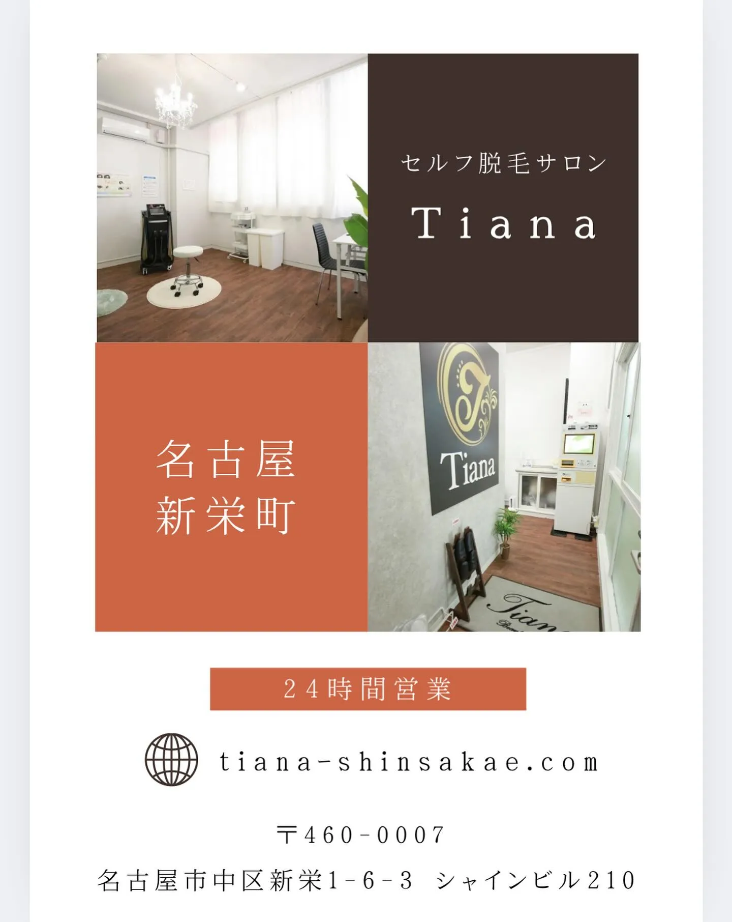 名古屋市/新栄町🚃から徒歩2分🙆 名古屋市/新栄町🚃から徒歩2分🙆24時間営業無人セルフ脱毛サロンTiana新栄店です🍂当店はスマホで御予約頂き、4桁の暗証番号が発行されますので、ご入力後、御入室頂ける手続き簡単のセルフ脱毛サロン✨✨✨Tia…