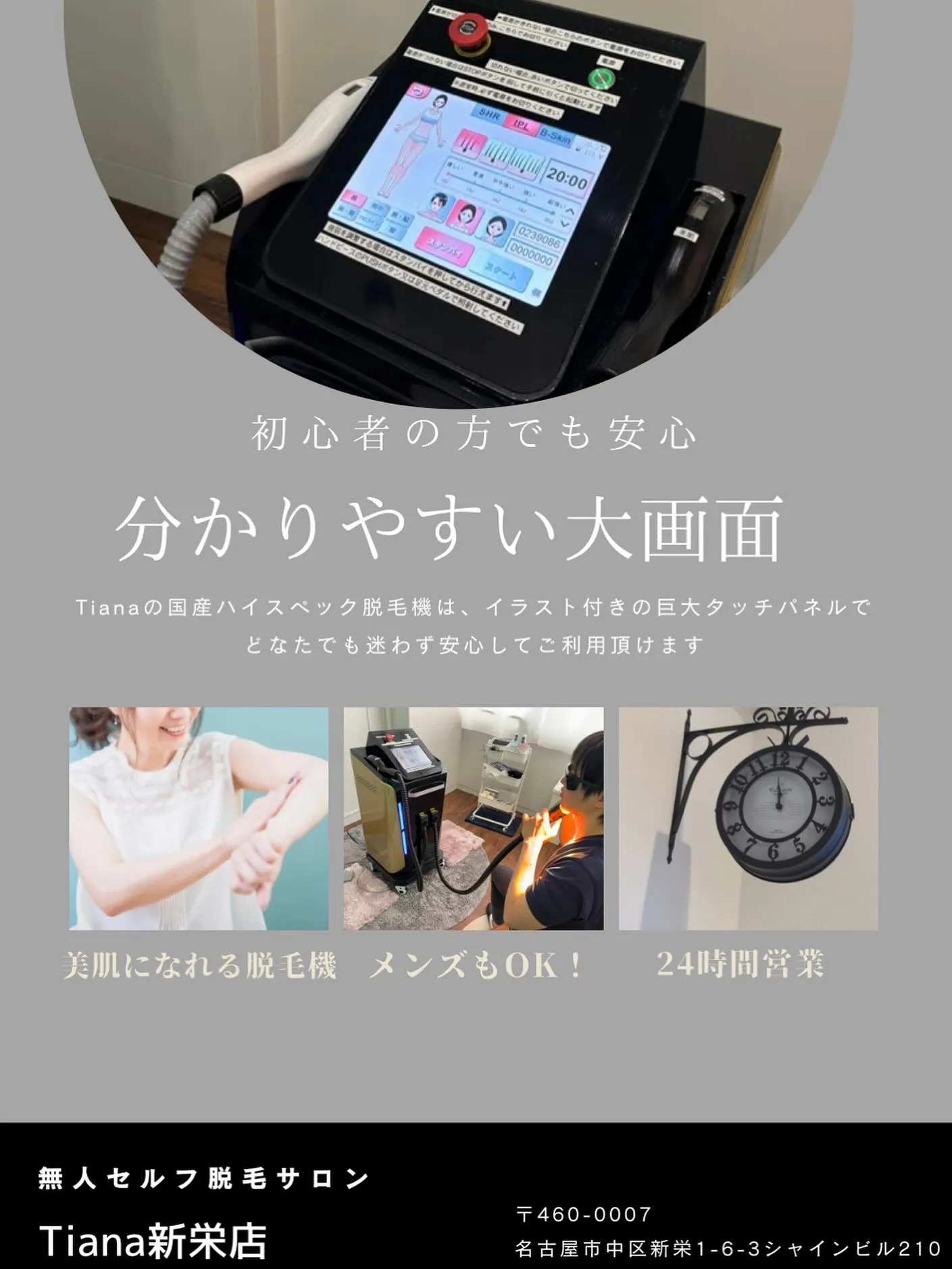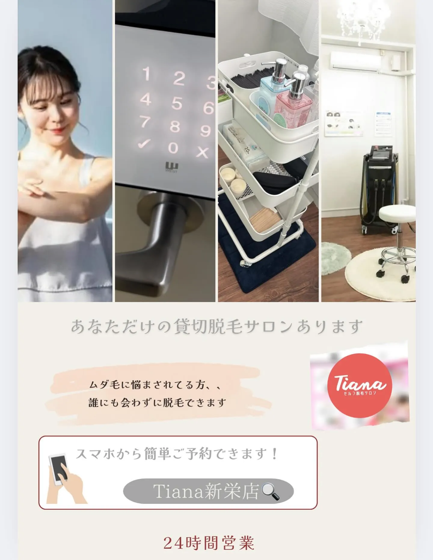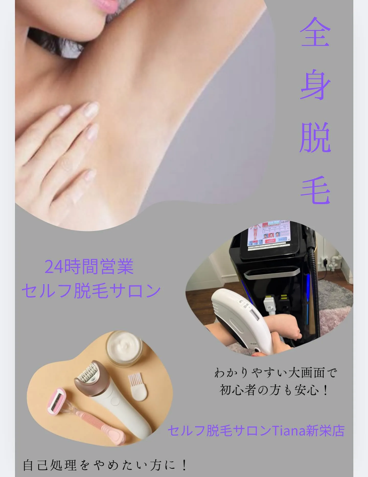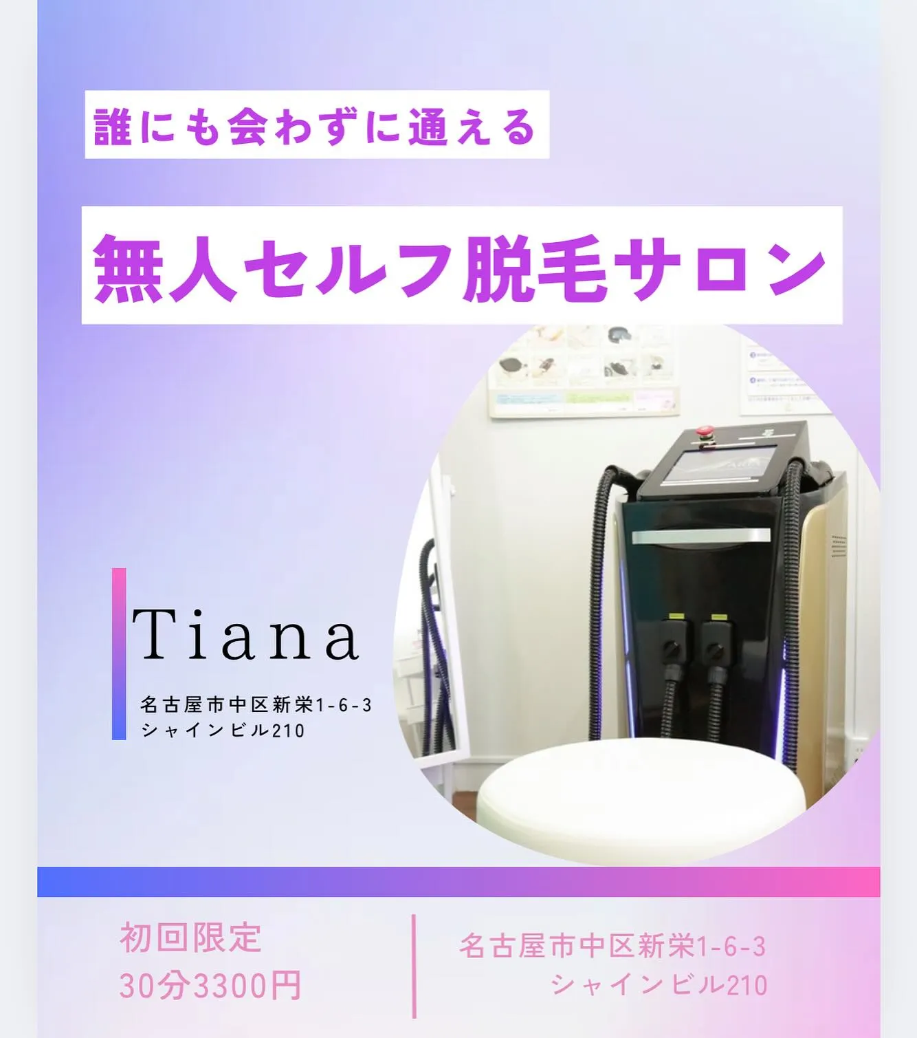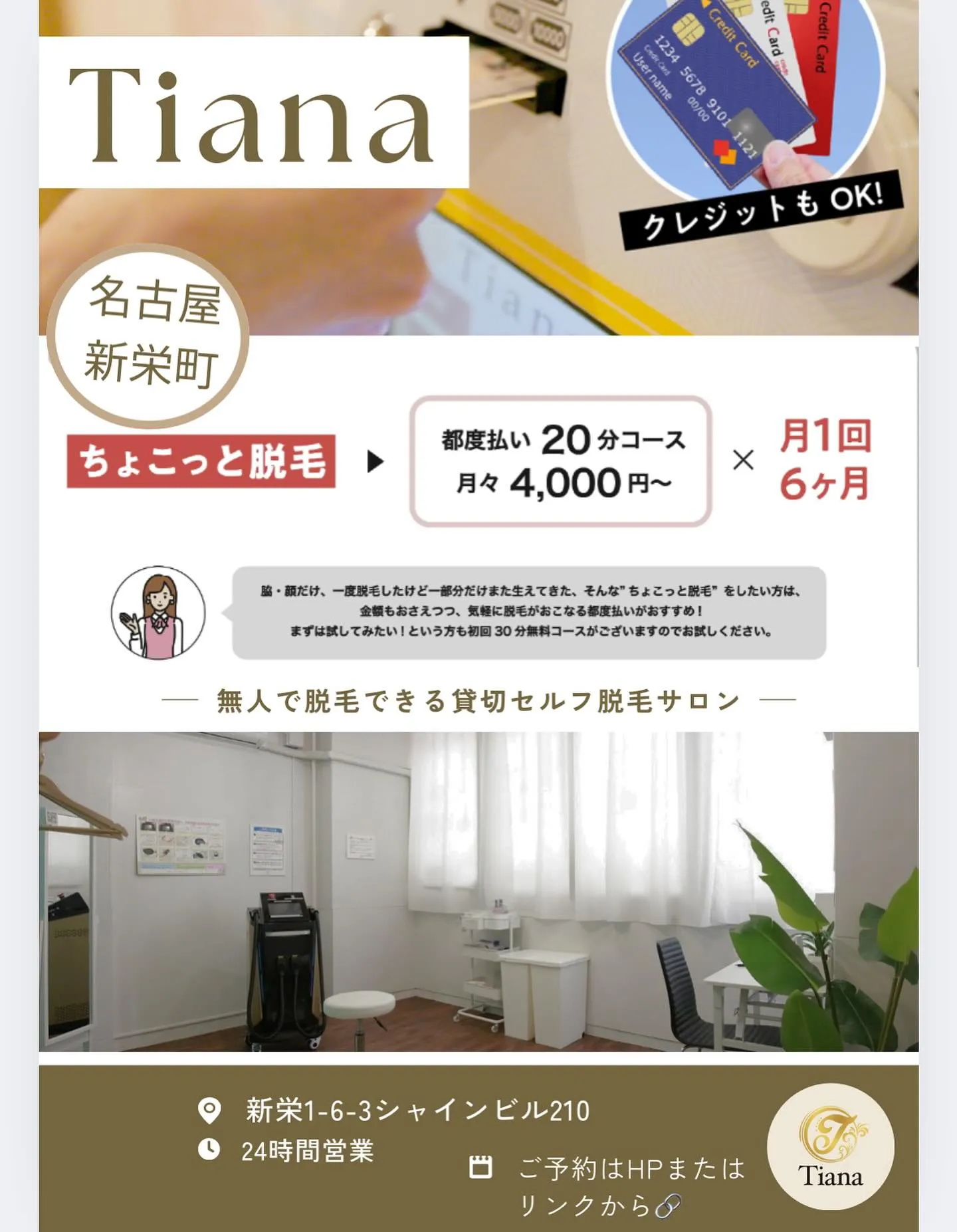 ムダ毛の自己処理卒業したい方に🎓誰にも会わずに脱毛できる、セルフ脱毛サロンTianaです✨当店は24時間営業で好きな時間に行ける名古屋/新栄町の無人脱毛サロン🏬男性も女性もご利用でき、時間内貸切で誰に…